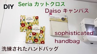 タイトル【洗練されたハンドバッグ 】 ♪ seriaセリア カットクロス ♪ ダイソー Daiso キャンバス はきれ 100均 diy Tote bag